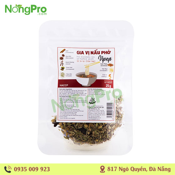 Thành phần Hoa Hồi(Tai Vị), Quế Cây, Đinh Hương, Thảo Quả, Hạt Ngò, Hạt tiểu hồi hương Huớng dẫn sử dụng - Rang các gia vị này lên trước khi nấu, chú ý bỏ quế, hồi, thảo quả vào rang trước sau đó mới bỏ hạt ngò, tiểu hồi và đinh hương vào. - Khi nào có mùi thơm bốc lên thì cho dừng lửa và đảo đều gia vị tránh bị khét hoặc quá chín sẽ làm cho nước dùng không thơm. - Ngoài ra khi nấu nước lèo phải sử dụng thêm Hành Tím, tỏi và Gừng, nướng hoặc rang lên để nồi nước dùng được thơm và ngon hơn. - Có thể sử dụng Xương Heo, Bò hoặc Sá Sùng để nấu nước dùng Bảo Quản: nơi khô ráo, thoáng mát