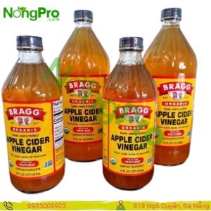 - Giấm táo hữu cơ Bragg được đánh giá là loại giấm còn giữ lại được lợi ích cổ xưa của giấm. Bởi sản phẩm này được sản xuất 100% từ loại táo hữu cơ trồng tại Hoa Kỳ, đảm bảo không giống biến đổi gen, không asen hay thu.ố.c tr.ừ sâ.u.