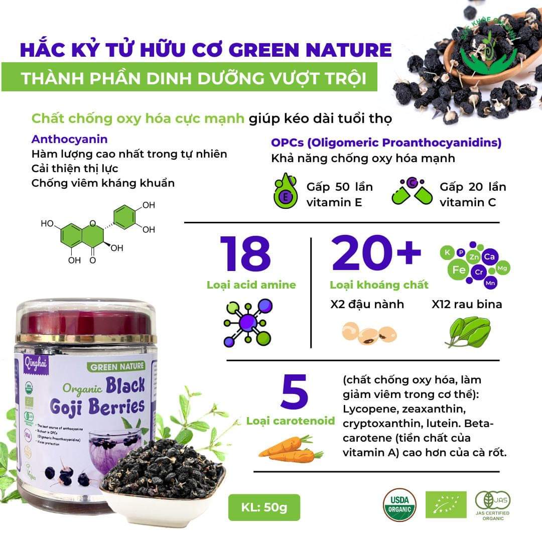 ????Ngoài ra, hắc kỷ tử hữu cơ Green Nature cũng chứa: