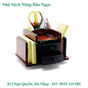 - Kích thước: 12 x 20 x 13,5 cm,màu sắc:nâu đỏ. Sản phẩm có 06 ngăn chứa giúp thuận tiện trong việc lưu giữ : bút viết, gôm, kim bấm, dao, kéo, thước, chuốt chì, bấm kim, gỡ kim,