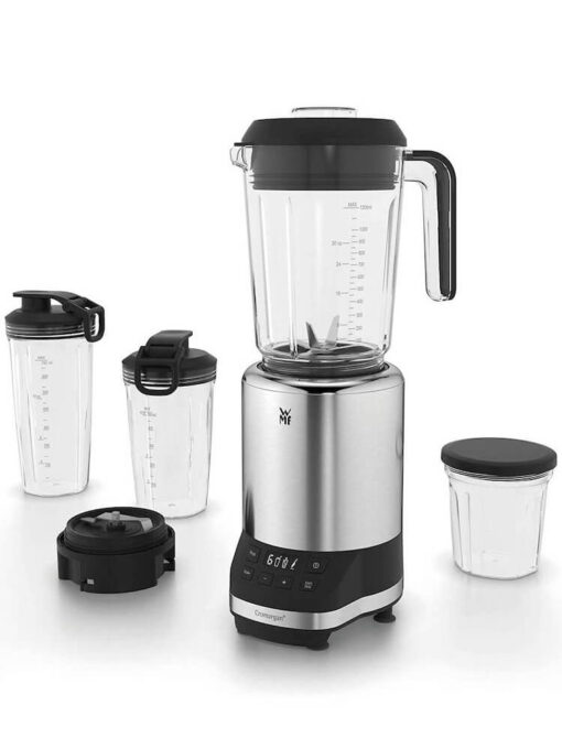Máy xay sinh tố đa năng WMF Kult Pro công suất cực mạnh lên tới 1200 watt, tốc độ quay lên tới 30.000 vòng/ phút. Máy có 6 tốc độ xay và 3 chương trình tự động với màn hình LCD. Lưỡi dao bằng chât liệu thép không gỉ Cromargan cực kì sắc: lưỡi cắt 6 cánh cho sinh tố và lưỡi dao phẳng để băm. Mang cho bạn nhiều lựa chọn: nghiền, trộn, băm….xay sinh tố. Với 4 bình trộn thể tích: 1,2 lít, 0,7 lít, 0,5 lít và 0,3 lít.