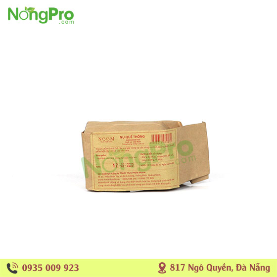 Thành phần: Quế thông trồng tại các vùng núi tỉnh Quảng Nam, thành phần bột cây bời lời tạo kết dính. Không sử dụng phân bón hóa học trong quá trình canh tác cũng như không chứa bất kỳ hóa chất nào trong quá trình chế biến