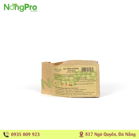 Thành phần: Gỗ trầm hương trồng tại các vùng núi tỉnh Quảng Nam, thành phần bột cây bời lời tạo kết dính. Không sử dụng phân bón hóa học trong quá trình canh tác cũng như không chứa bất kỳ hóa chất nào trong quá trình chế biến
