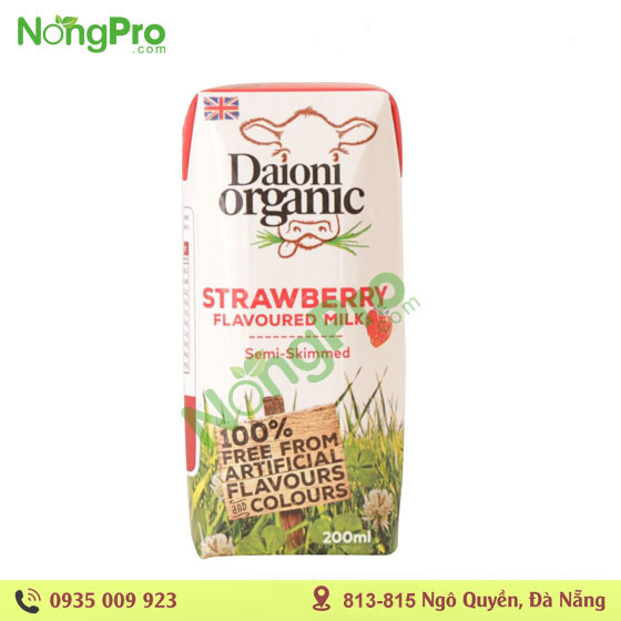 - Sữa hữu cơ tách béo Vị dâu Daioni 200ml